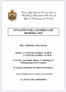 MEDALLA DE ORO DE LA PROVINCIA DE SEVILLA 2025 A LA HERMANDAD DEL ROCÍO DE VILLAMANRIQUE DE LA CONDESA Queridos Hermanos en la fe: Con